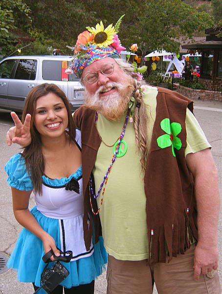 Here's another costume from a previous Halloween party at work a few years ago. I call this, "Beauty & the Beast" (the beauty being obviously to the left of me -- sorry guys, she's already taken - LOL).... probably one of the easiest "costumes" I've ever had to put on, since my long hair is with me 24/7, the clothes (such as they are) were just cheap hippie-looking things I burrowed from somebody else.
