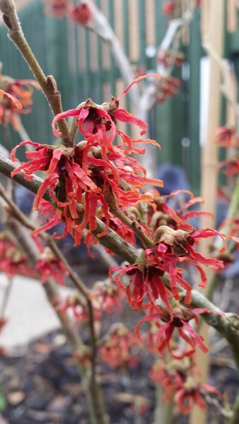 I've only seen a couple of witch hazels growing in this area, but they're a welcome splash of colour at a very dreary time of year. Roll on dafodil season!