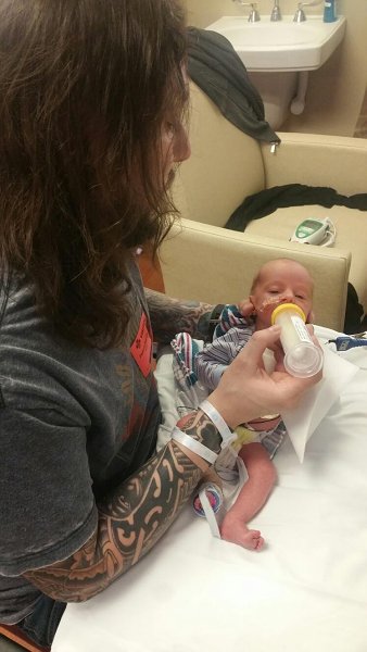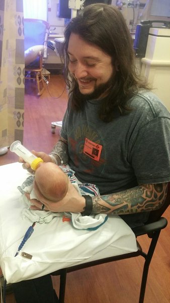 My wife gave birth on the 22nd of February to our son and daughter. They are in the Nicu and making great progress. Here is a pic of me feedin my son, Finley. Enjoying life !!