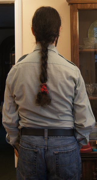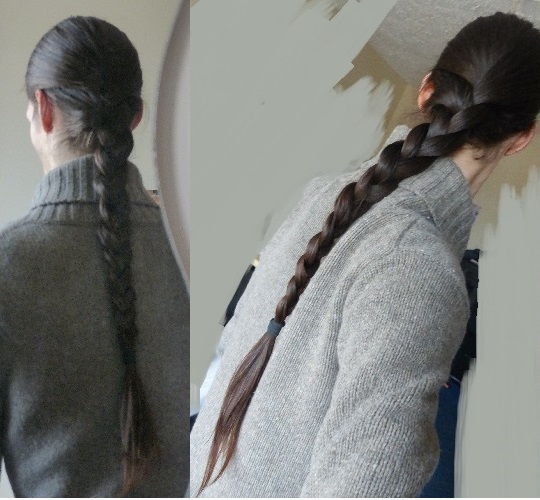 I hope this pic shows up -- if it does, this braid is an example of how well my partner can braid hair (when I braid it myself, it doesn't usually turn out this neatly - LOL)