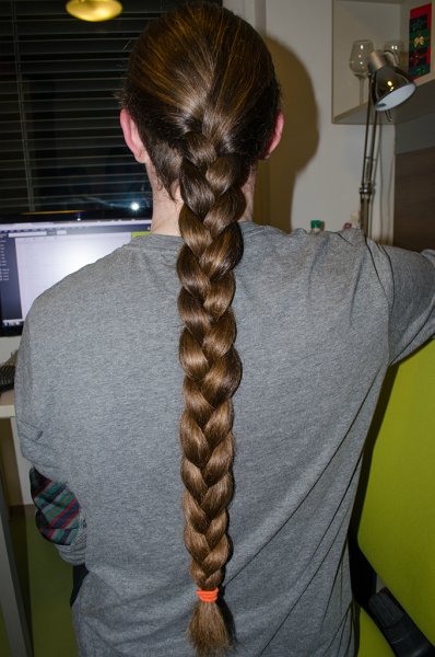 welcome! Your braid looks fantastic! I think I've never cautiously seen a guy with a french braid in real life, so your post is breaking down the wall in my brain that only girls are wearing this. A french braid seems really difficult to me, maybe I'll try it one day. Here is me with a normal braid, the photos were taken one year ago.
