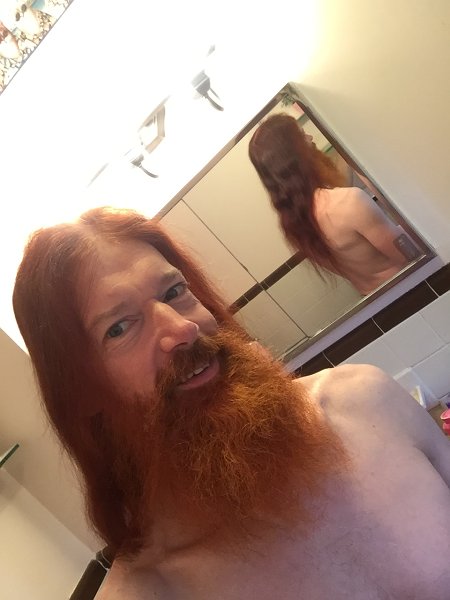 Anyway thank you for your post and my suggestion would be trim the splits if you must but cutting hair does not speed hair growth as that's just an old wives tale. Actually I feel it's a ploy to get guys to cut their hair short again since trimming ruins your progress. I'm including a fresh pic of good ole me approaching geezer hood. Keep the faith and be true to yourself :) Cheers