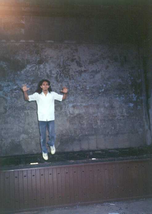 The second pix was taken by a friend whilst I was jumping from a stage of a burnt hall.