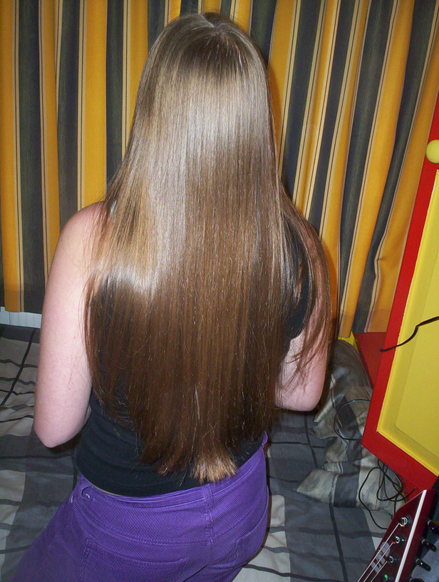 Hey guys, just thought you'd like to see these pics of my cousins hair. It used to be "bum" length, but she had it trimmed to stop her headaches. Now she wants it trimmed again - about another 4 inches off, and layers.... :-( lol, It will still be nice hair though!